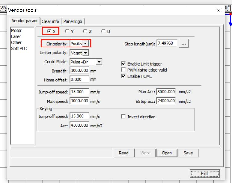 - In RDWorks, access "Vendor param".(password: rd8888)